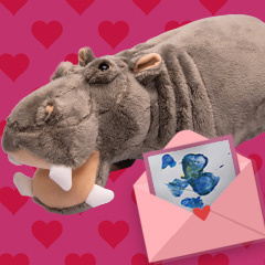 Fall in love with a one-of-a-kind Valentine from Cleopatra, Franklin Park Zoo's pygmy hippo! This Valentine’s Day special includes a cuddly hippo plush paired with an exclusive print created by Cleo herself. Order online, or while supplies last, purchase your package in person on February 15 from 9:00 a.m.–3:00 p.m. inside the Tropical Forest Pavilion during our World Hippo Day Celebration. Cash and credit cards are accepted. Orders and full details