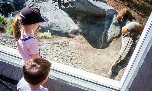 Bush dog pups can be seen on exhibit when temps are 40 degrees or above, and there’s no ice in their pool. Visit our Winter Visits page to learn more about the amazing animals you can see during the winter.