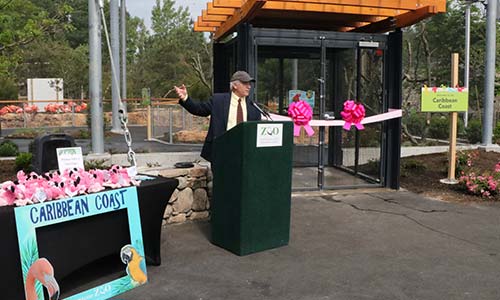 The $4 million Caribbean Coast features a walk-through aviary with Caribbean flamingos, scarlet ibis, macaws and Jamaican iguanas, an exhibit featuring bush dogs, and fun, imaginative and interactive experiences designed to further connect guests of all ages to this region of the world. The Caribbean Coast is the only exhibit of its kind in New England where guests will have the opportunity to feed the flamingos.